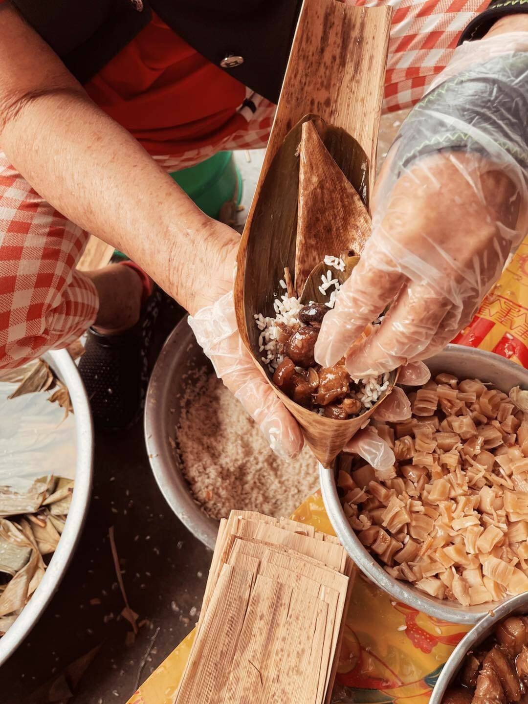 手工精心製作,顆顆飽滿,炊熟之後不黏粽葉, 糯米緊緊相黏不鬆散,真正厚功的美味。